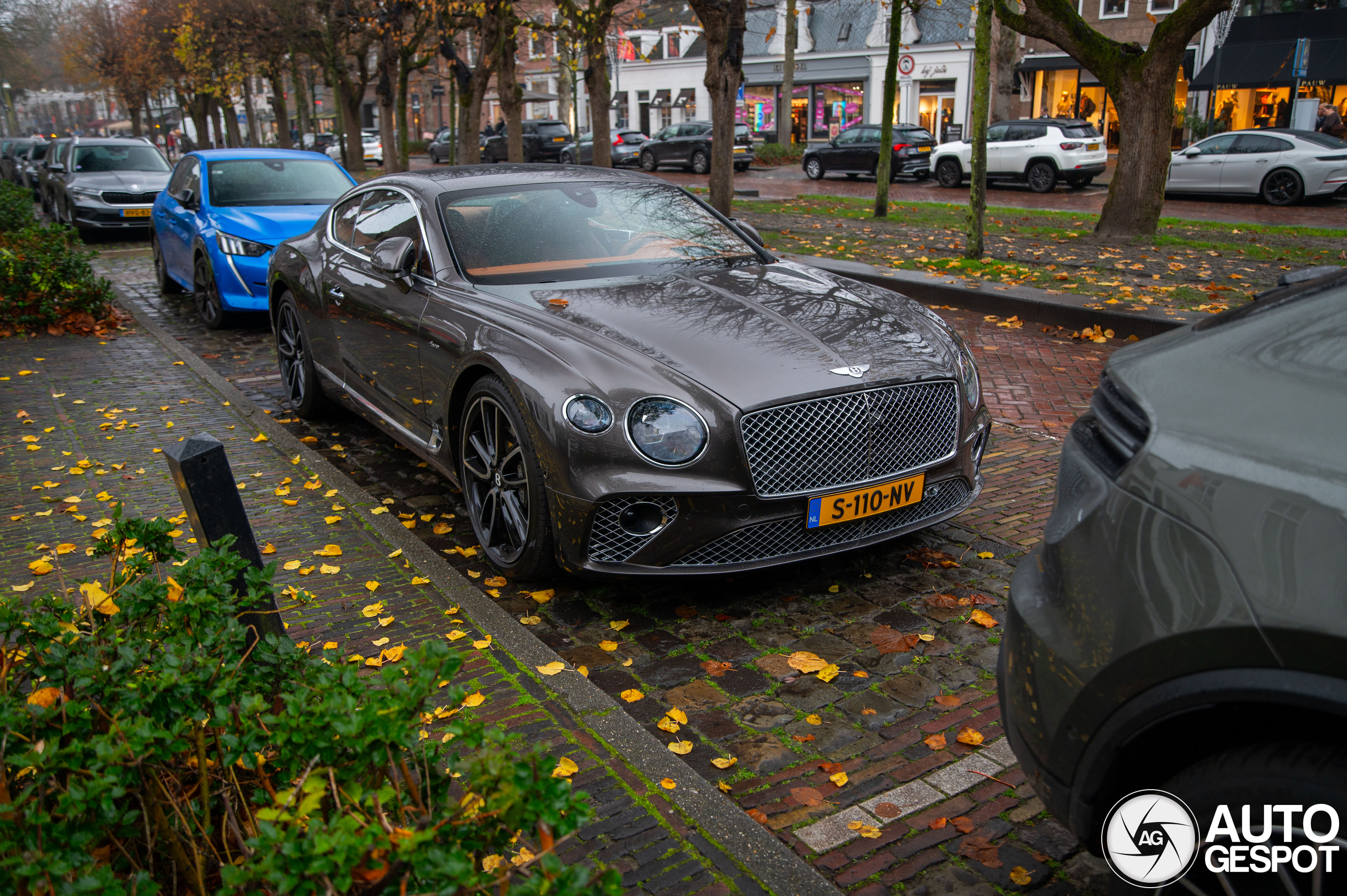 Deze Bentley kleurt aardig mooi bij het weer.