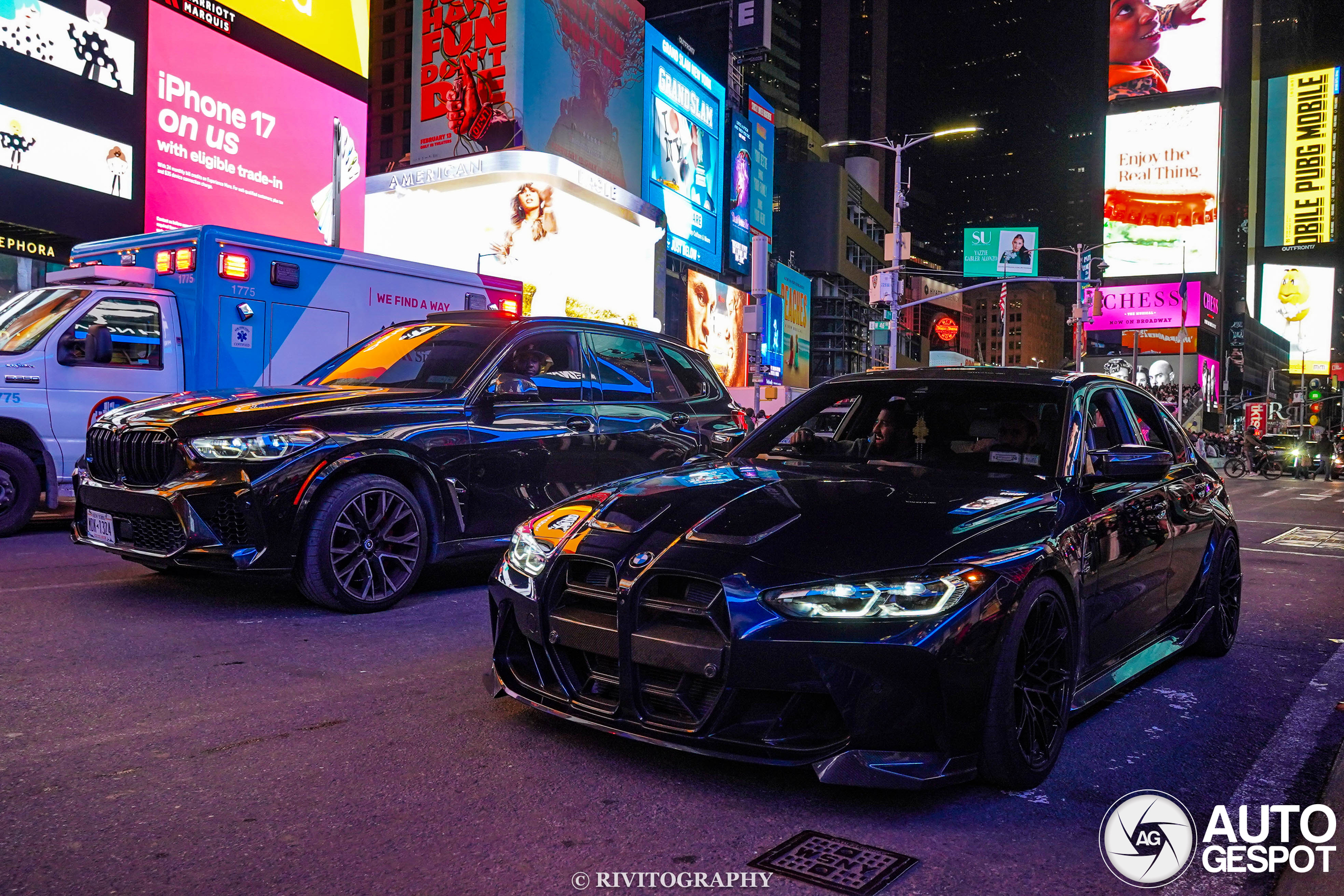 I found this M duo driving down 7th Avenue in Times Square on 4/11/2026. The car featured here is a 2021 BMW M3 Competition. The funny part is that the X5 M Competition was not with the M3, they just happened to be next to each other waiting at the light. The X5 M owner was snapping pics of the M3 lol.