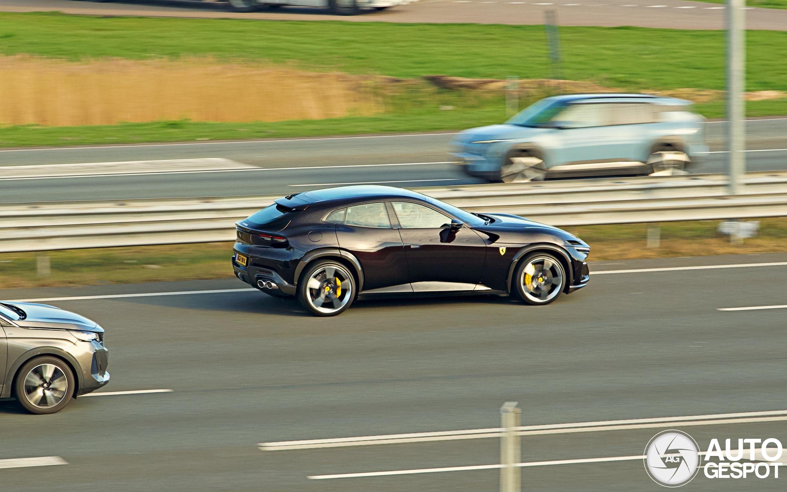 Mijn eerste Puro voor de site, eindelijk. Nadat ik klaar was in Beverwijk met m'n rondje afgelopen zondag wilde ik eens kijken wat mijn camera langs de snelweg kon, nog nooit geprobeerd haha. Eigenlijk kan m'n lens niet genoeg inzoomen voor de afstand die ik had tot de snelweg, en eerlijk gezegd had ik in het begin ook geen idee wat ik aan het doen was haha. Maar goed, na ongeveer 45 minuten aankloten met foto's maken als er wat spotwaardigs voorbij kwam dook ineens deze Purosangue op. Foto's zijn nog steeds niet super, en de Peugeot zat ook enorm in de weg, maar ik wil hem toch graag online zetten. Hopelijk ook snel eentje stilstaand binnenkort!