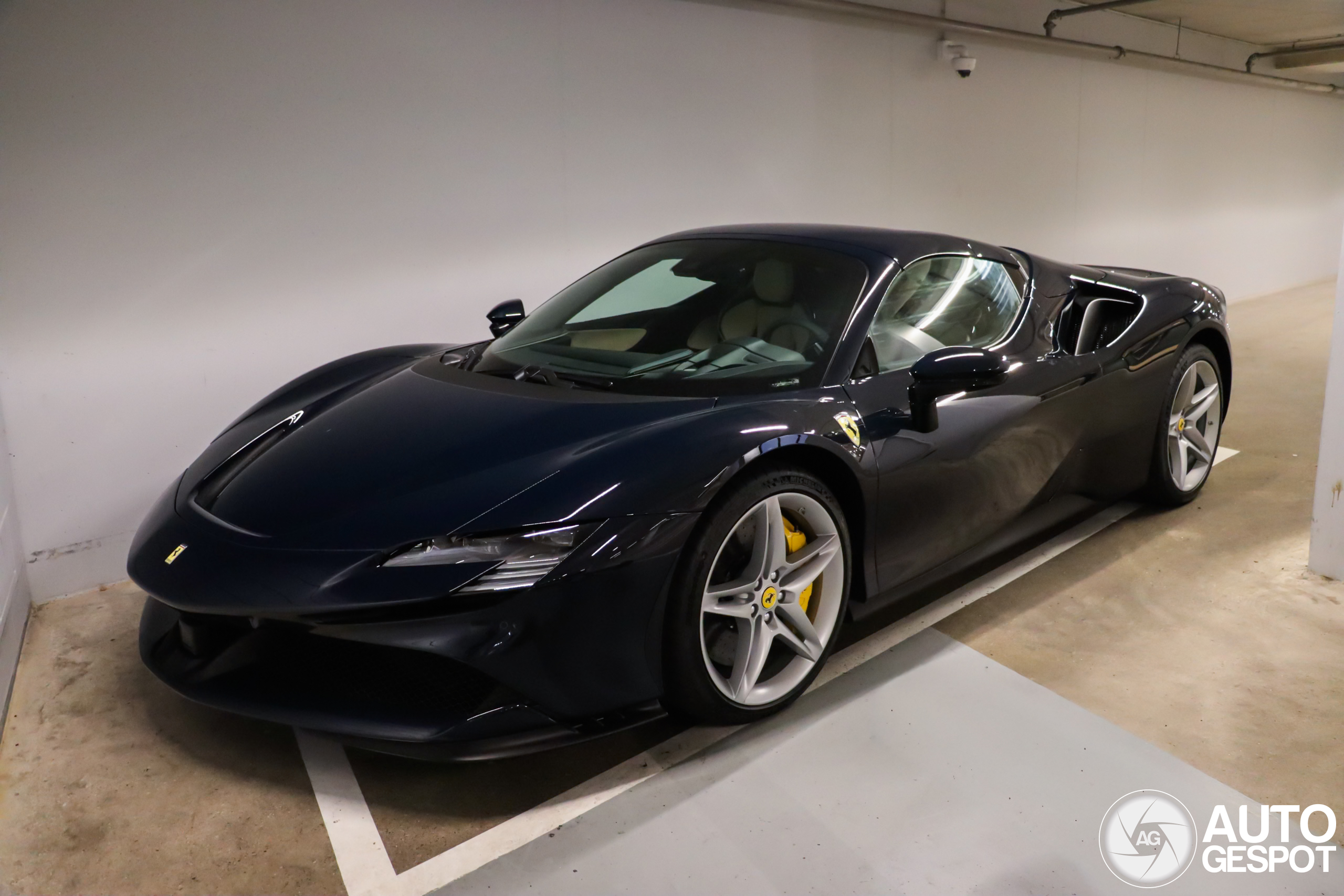 De welbekende SF90 van de Valley parkeergarage. De donkerblauwe kleur staat erg fraai met de lichte velgen. Toch exemplaar dit.