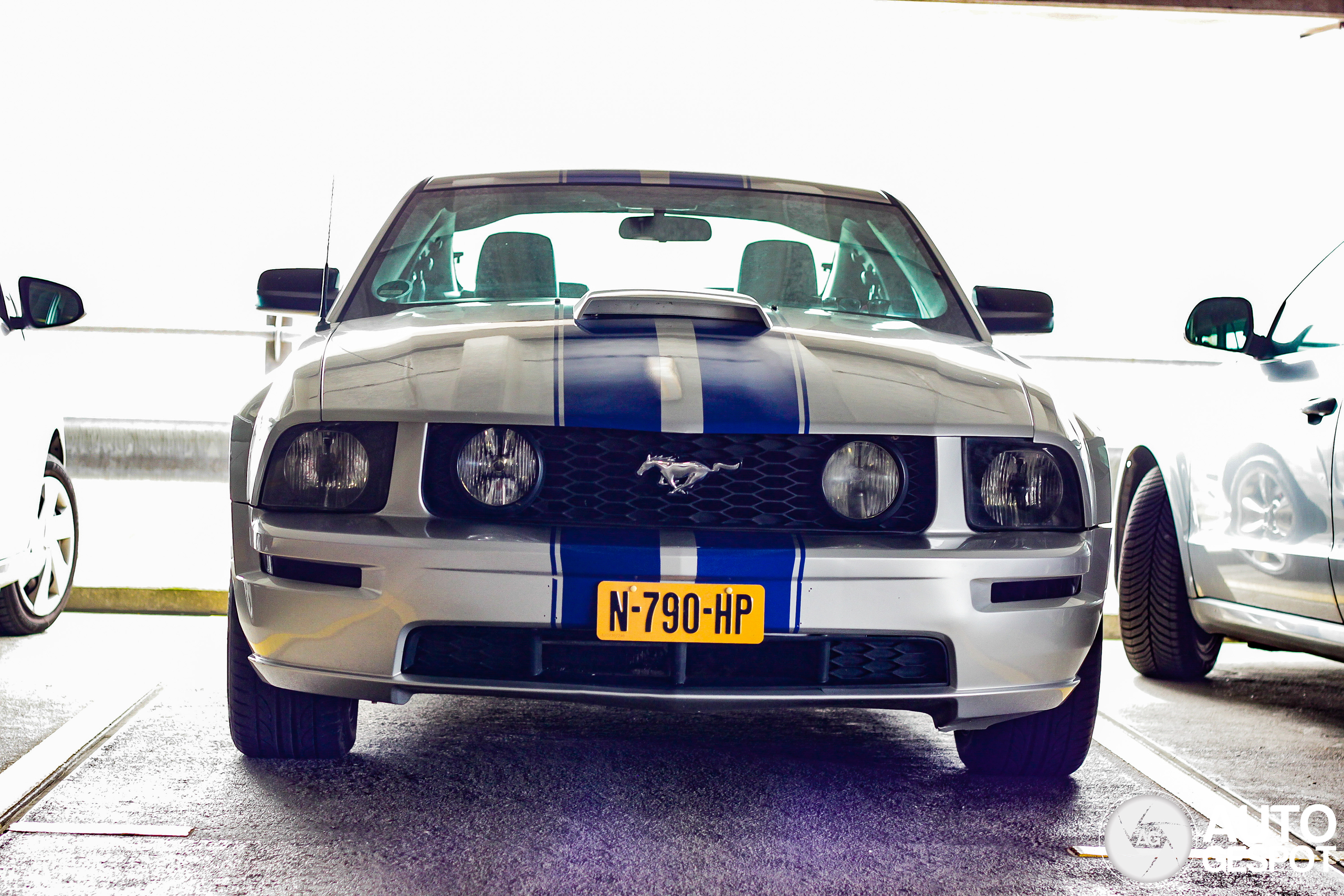 KamaSutra 2026 - Jaarbeurs Utrecht. Prachtige oudere Mustang GT van juli, 2006 en die in oktober, 2021 naar Nederland geïmporteerd is en ik nu voor 't eerst mag delen op de site. Een leuke uitvoering waar ik een beetje aan de Nissan Skyline uit 2Fast2Furious moest denken. Stond wel lastig met fel buitenlicht weer in de deze parkeergarage, grappig ook dat roze zonnebrilletje van de Zwarte Cross achter de voorruit hehe