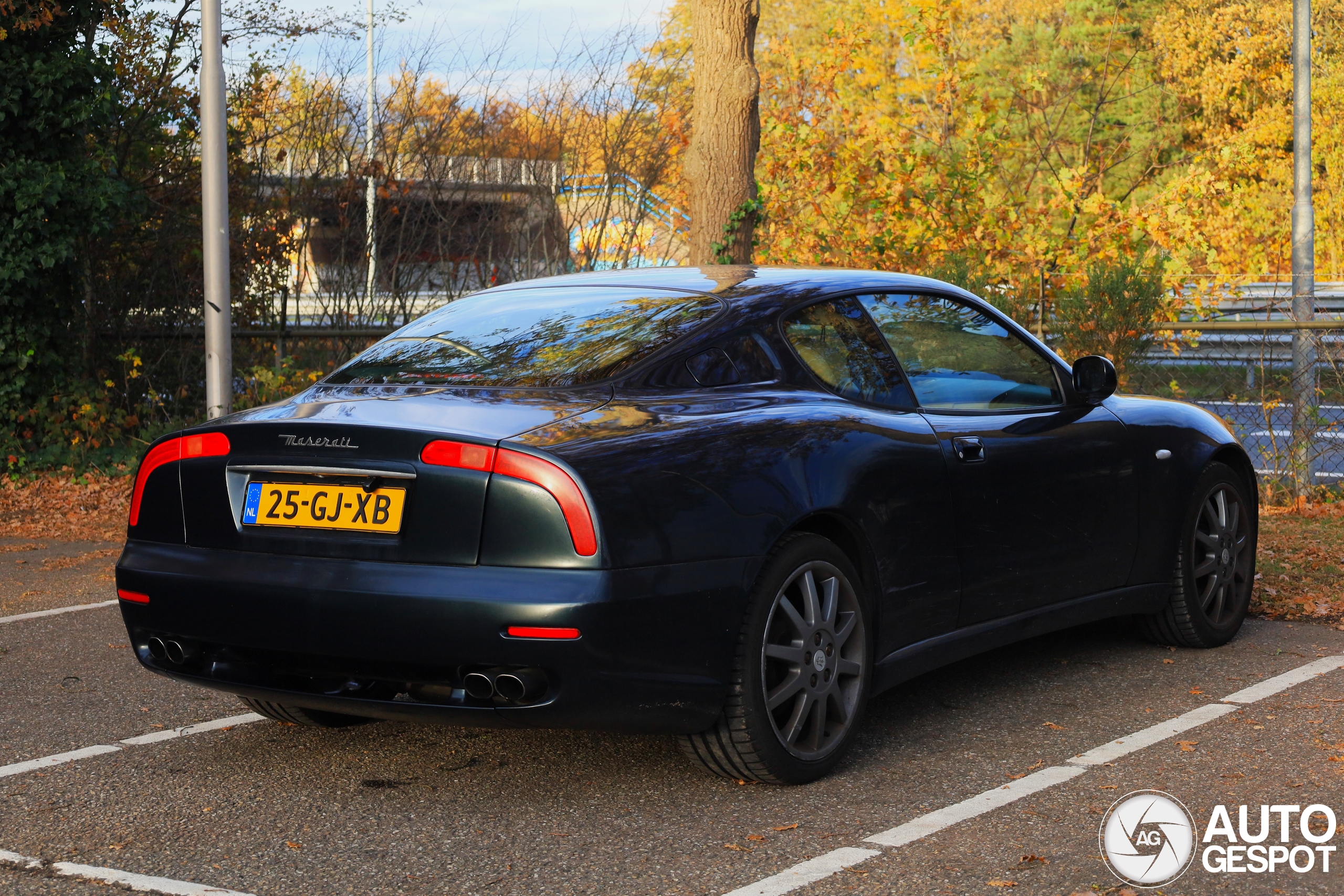 Deze Maserati 3200GT met de mooie boemerang achterlichten is bijna 25 jaar oud. Hij ziet er nog aardig uit, hier en daar moet wat werk gedan worden. De kwaliteit van de lak daarentegen is matig. Officieel is hij groen, maar hij lijkt overgespoten met een zwartblauwe matte sinaasappellak. Sinds mei 2025 heeft hij een nieuwe eigenaar, wellicht gaat die deze klassieker nog opknappen.