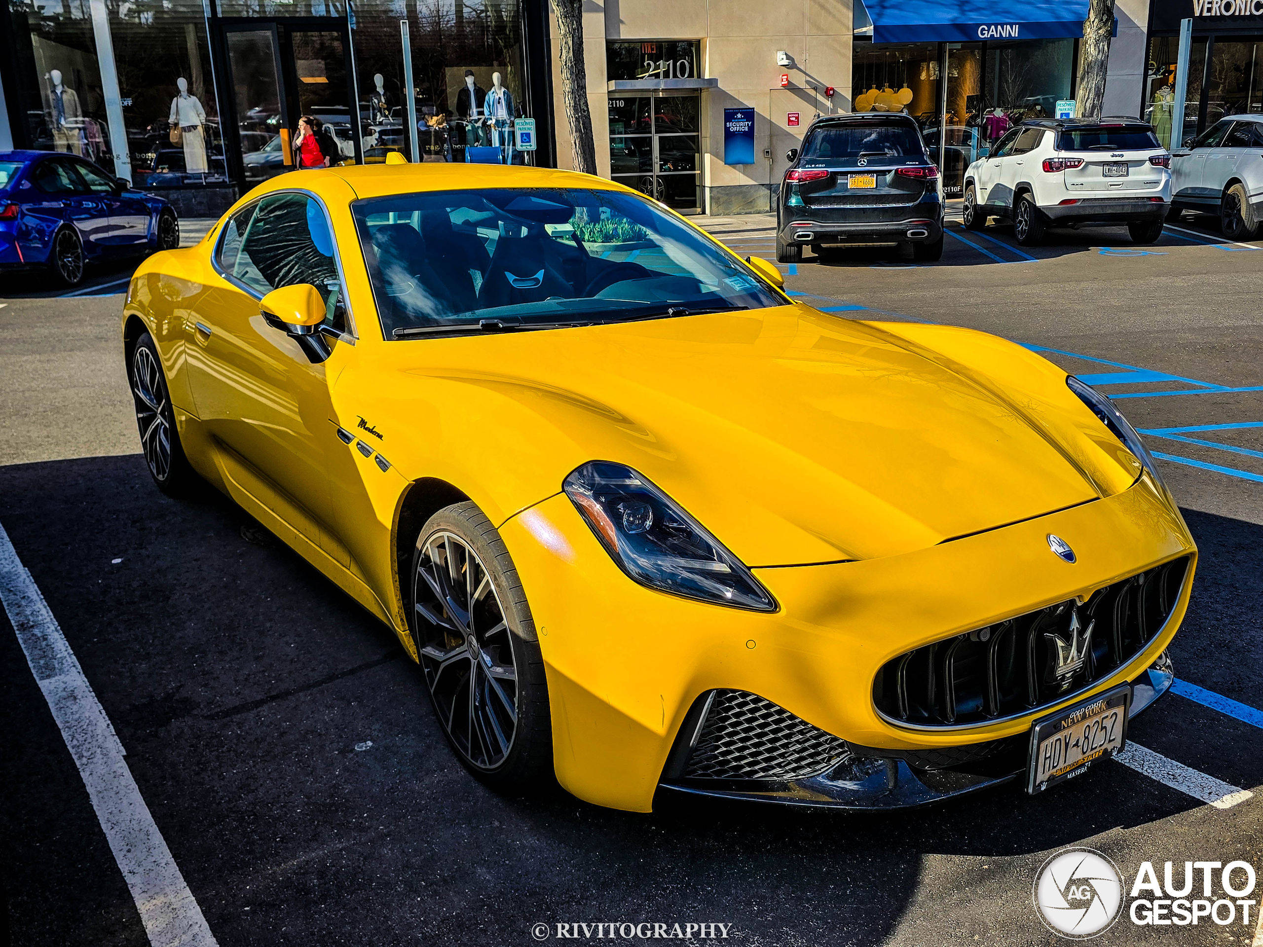 I found this yellow 2024 Maserati GranTurismo Modena parked at Americana Manhasset on 3/28/2026. The owner used to have a blue Maserati Quattroporte S Q4 that I sadly never got enough photos of for AG.