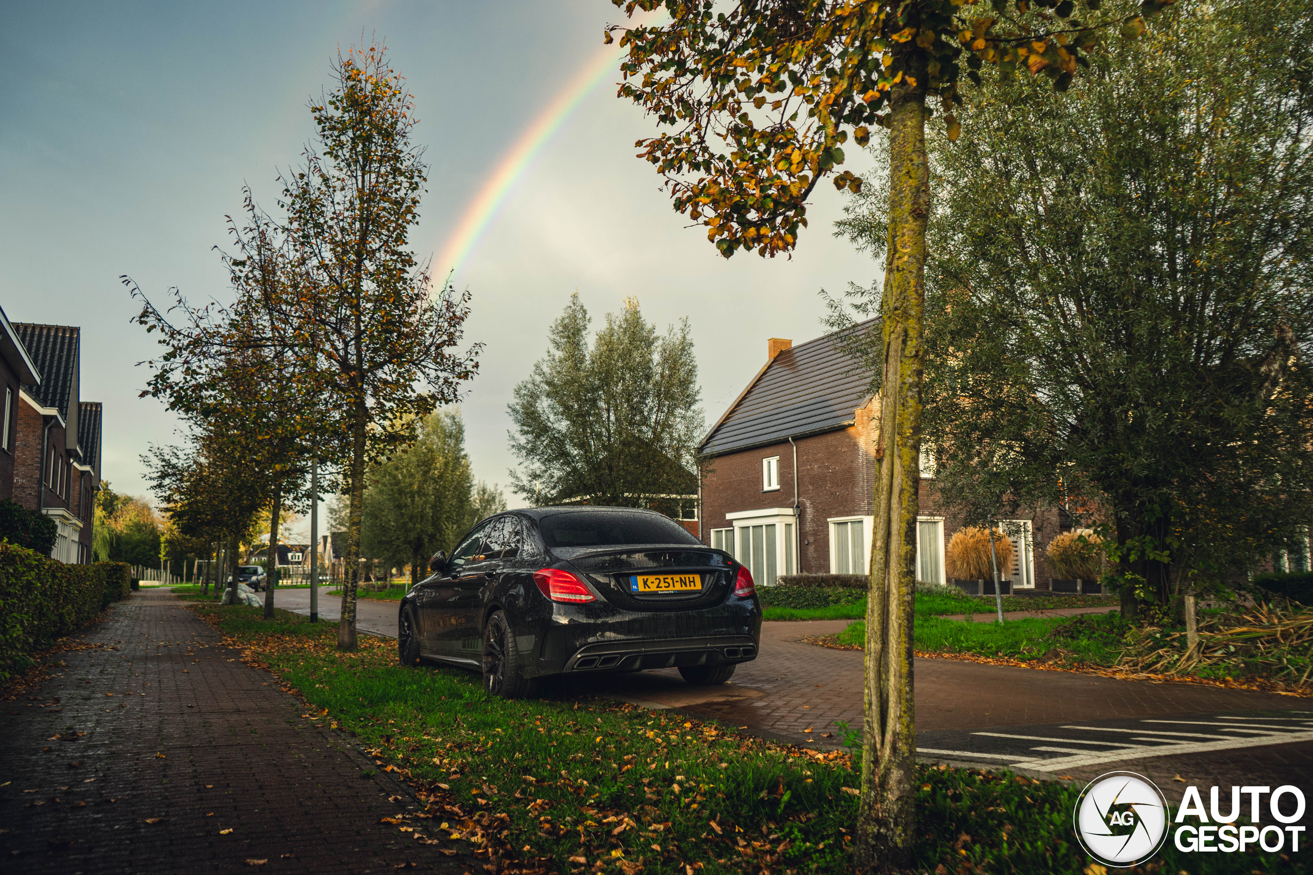 Ik zag hem eerst onderweg naar school, maar toen maakte ik er geen foto's van, toen ik terug kwam naar huis en huiswerk ging maken zag ik deze regenboog vanuit het raam, snel ging ik richting de C63, omdat ik wist dat deze er mooi bij stond voor de foto's. De foto's zijn heel gaaf uitgekomen!