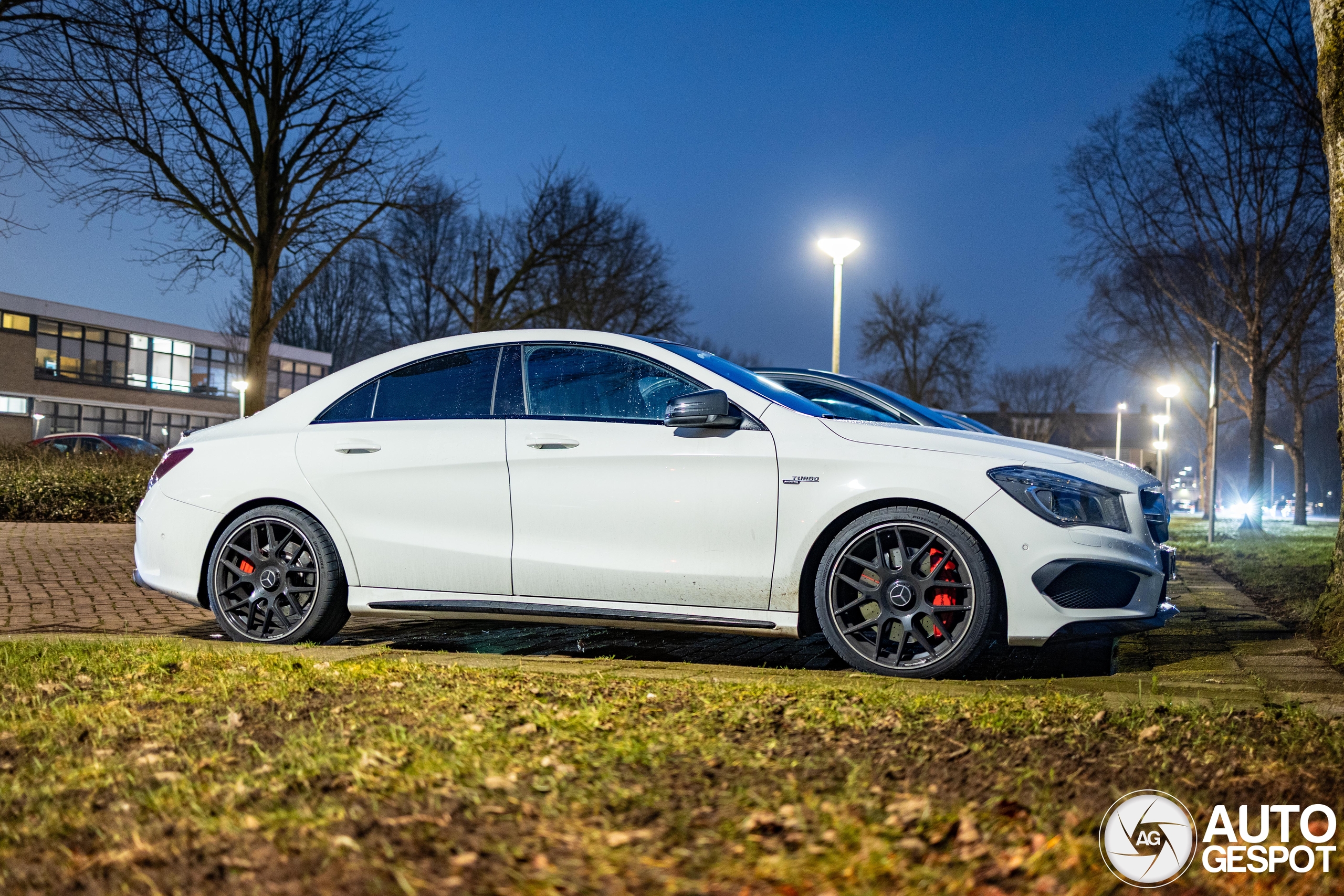 Leuke CLA 45 in het wit, stond gelukkig best goed geparkeerd voor foto's! -- Nice CLA 45 in white, luckily it was quite well parked for photos!